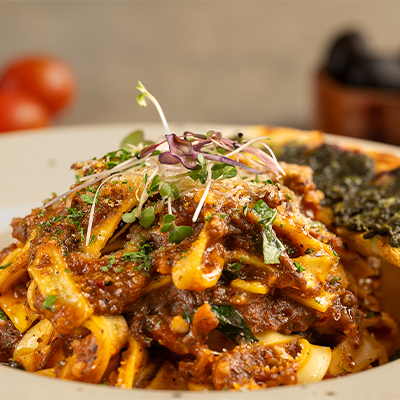 Braised Beef Ragu Fettucine by Haris&Co | Dec 30, 2025 Freshly made and boiled fettucini pasta tossed in slow cooked beefragu, finished with cream and parmesan cheese.